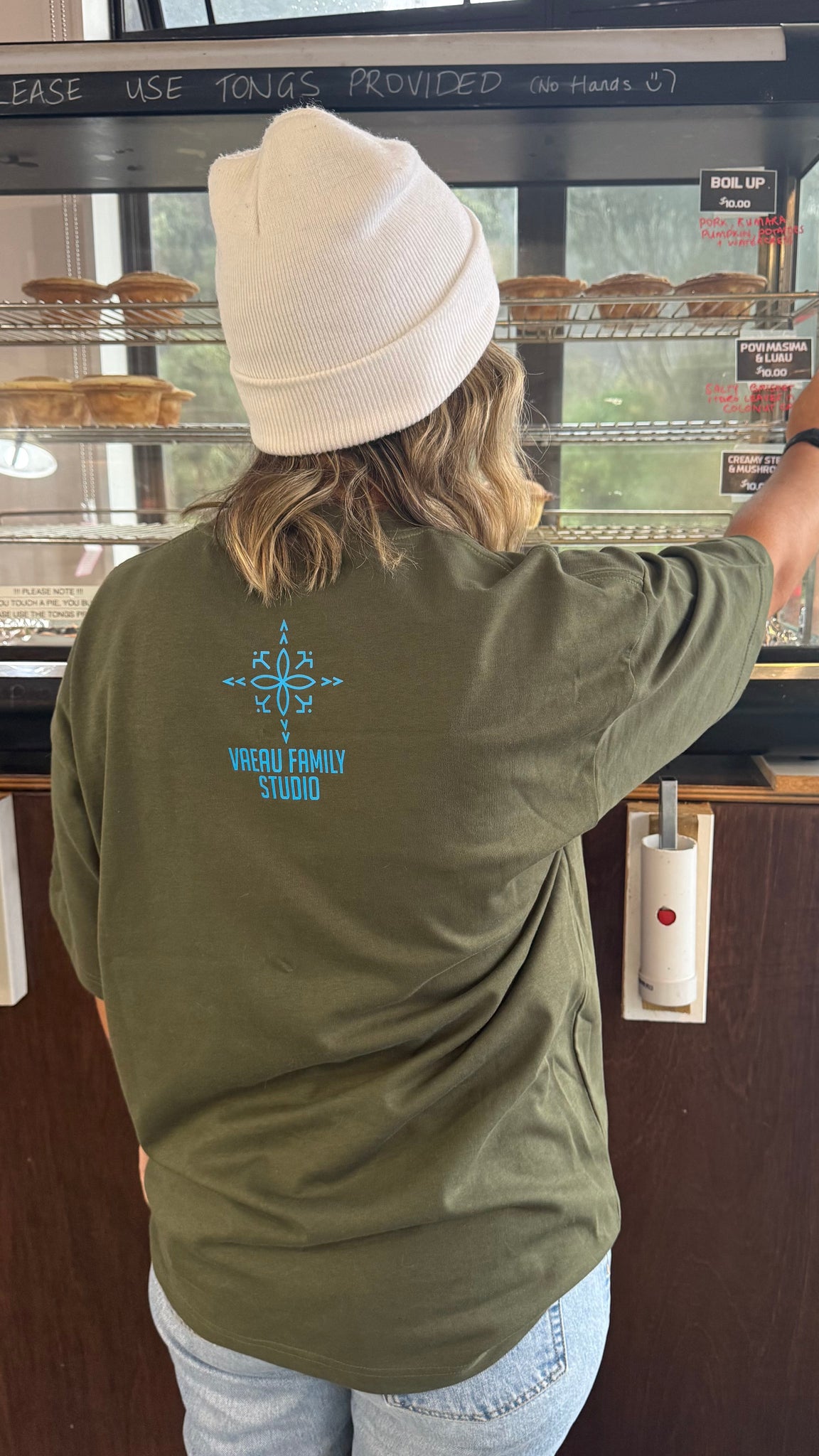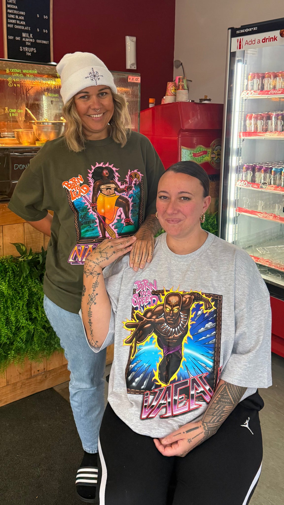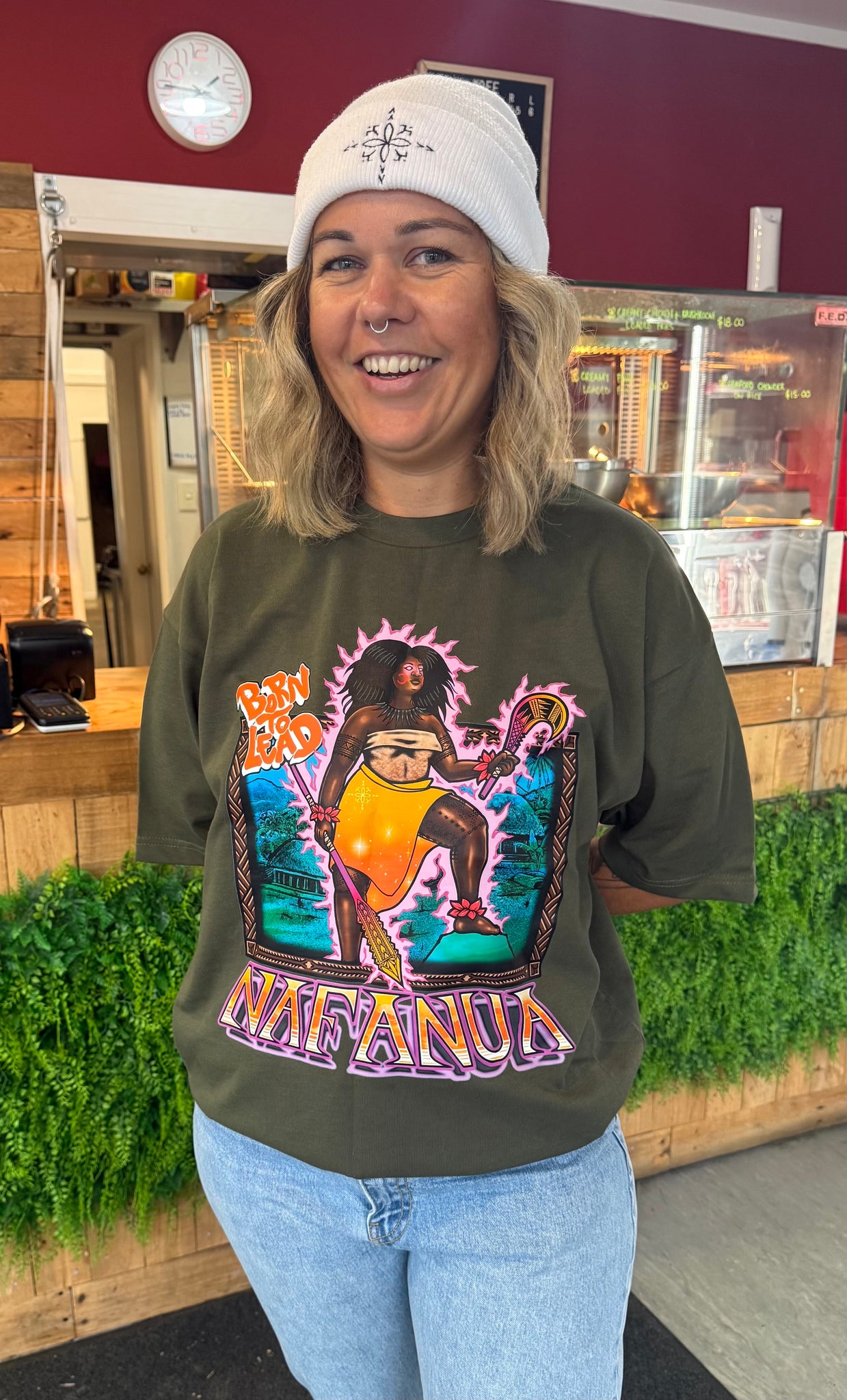 The second original design by Hiram Fa’alia Vaeau in a series inspired by the vintage island tees your aunties and uncles used to wear. A representation of the story of Nafanua - a powerful figure in Samoan history. Best known for her courage and leadership that lead to unity amongst the warring villages of Savai’i - Born to Lead.